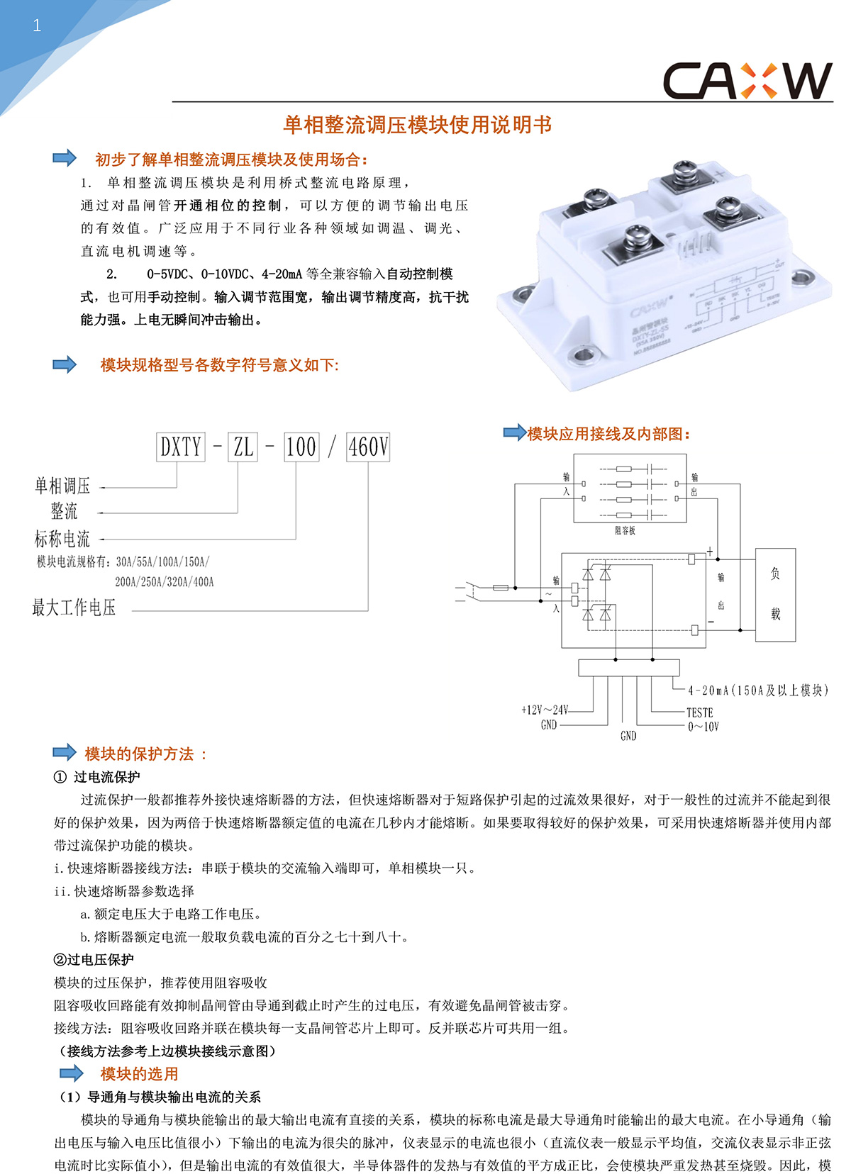 單相整流調(diào)壓模塊說明書(矽微)